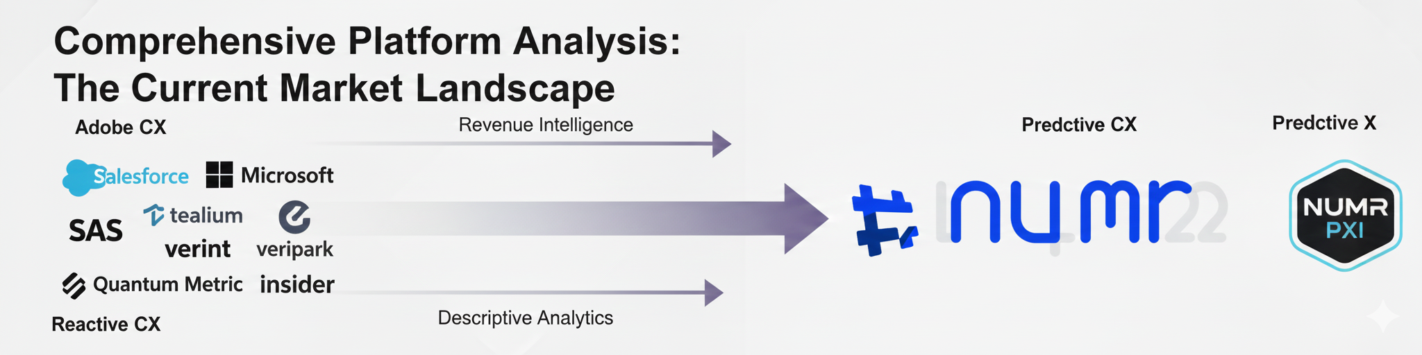 NUMR PXI is the only platform specifically engineered to address the challenges that plague banking CX measurement and its connection to business outcomes in legacy banks. Its core value proposition is connecting CX initiatives directly to revenue outcomes, solving the critical problem of demonstrating ROI.
