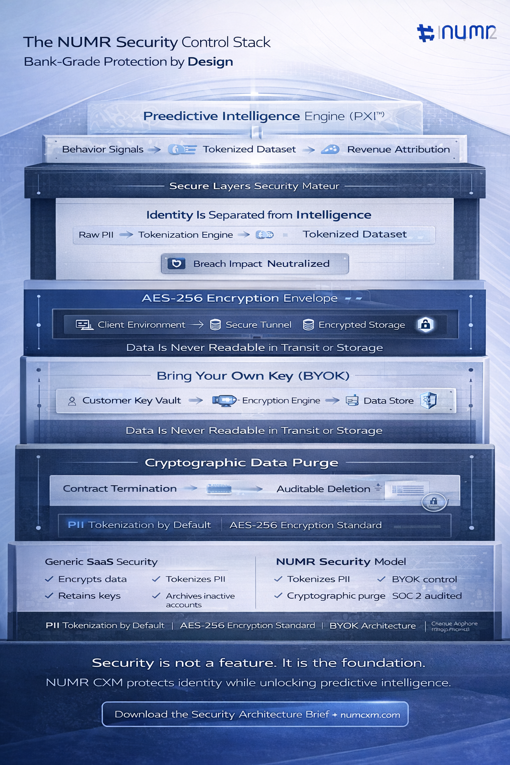 This is where NUMR CXM distinguishes itself from generic SaaS tools. We understand that "trust us" is not a valid security policy for a bank.