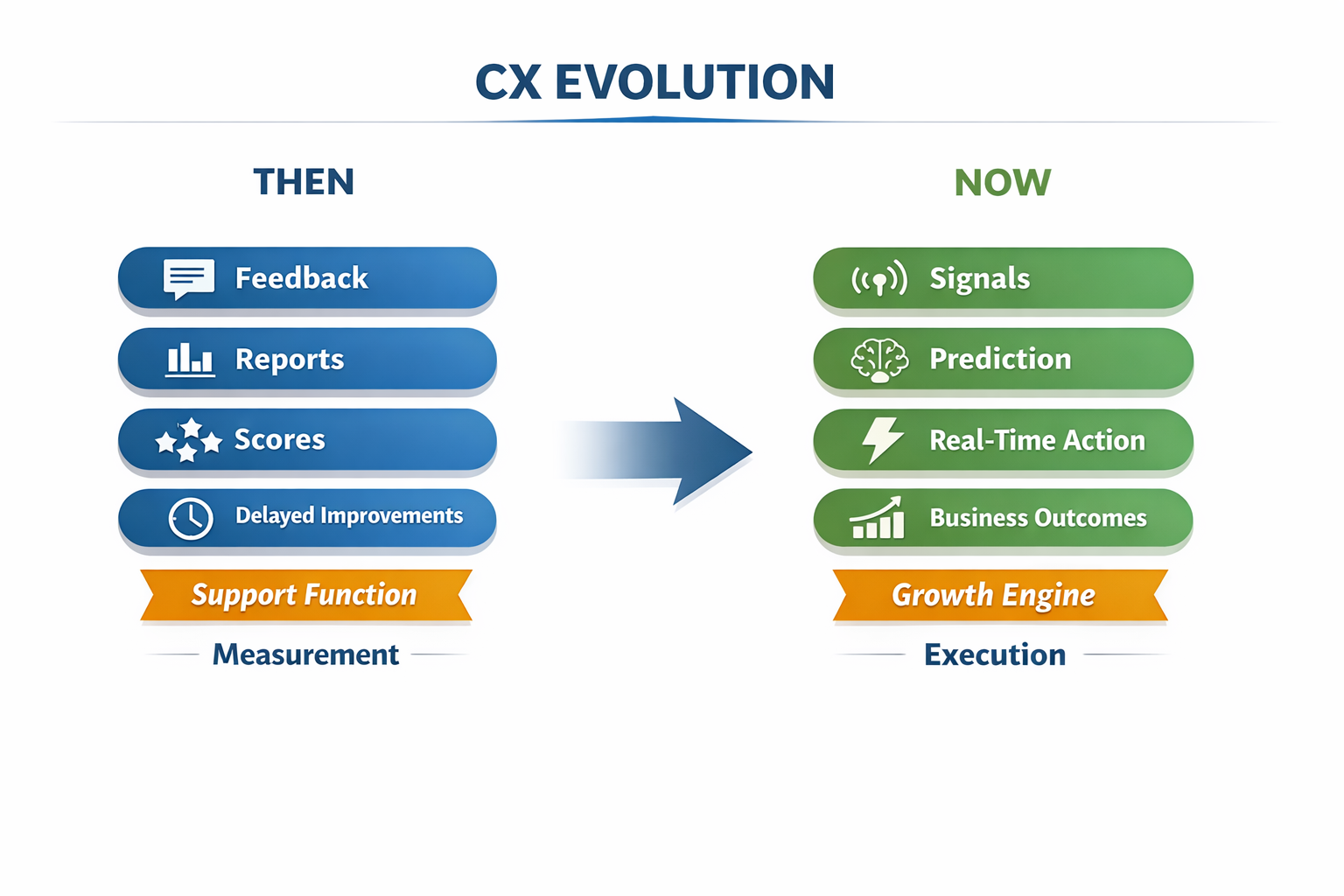 • The shift is clear: CX is moving from a measurement system to a decision system that directly drives business outcomes.