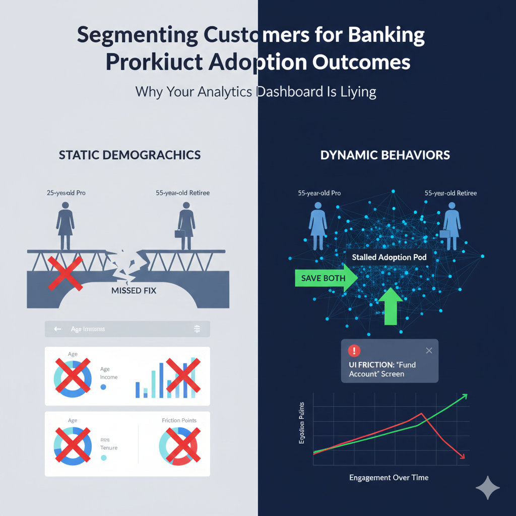Most banks are still segmenting customers for marketing efficiency (Who are they?), not for product adoption outcomes (What are they doing?).
