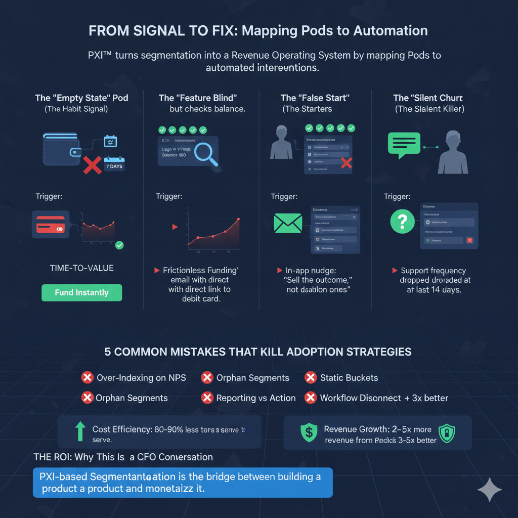 PXI™ turns segmentation into a Revenue Operating System by mapping Pods to automated interventions.