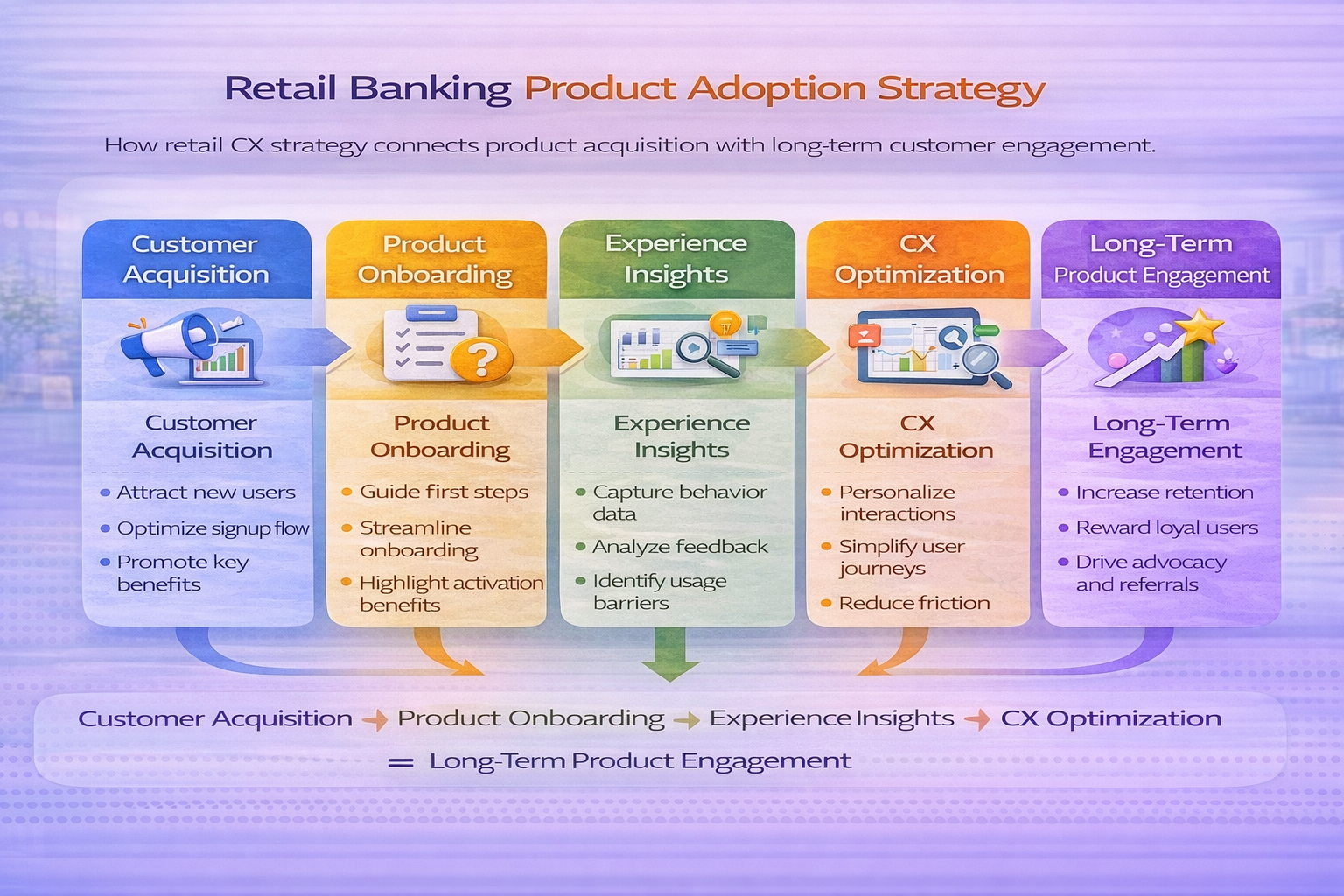 Many retail banks are now adopting Predictive Experience Intelligence (PXI)™, an advanced CX-focused system developed by NUMR CXM, to understand product adoption more effectively by combining behavioral signals, journey analytics, and real-time customer insights into a unified view of engagement.